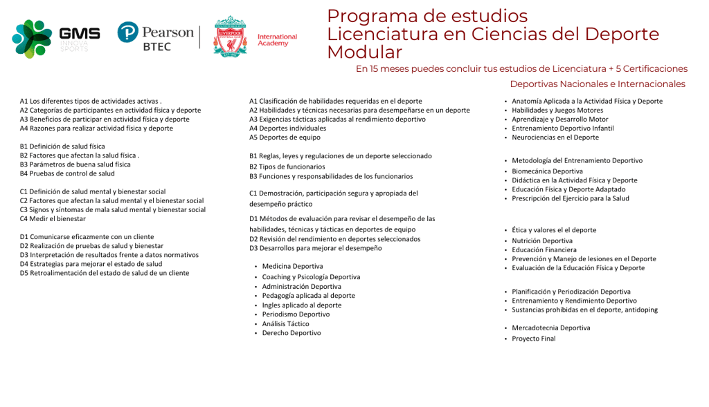 1.- Certificación internacional BTEC avalado por Pearson BTEC y el Liverpool de la liga Inglesa, con reconocmiento de 290 universidades en 90 paises