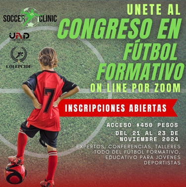 Del 21 al 23 de noviembre de 2024, de 19:00 a 21:00 hrs (México), te invitamos al Primer Congreso de Fútbol Formativo, donde los mejores profesionales del sector compartirán las últimas tendencias, estrategias y métodos para formar a las próximas estrellas del fútbol.