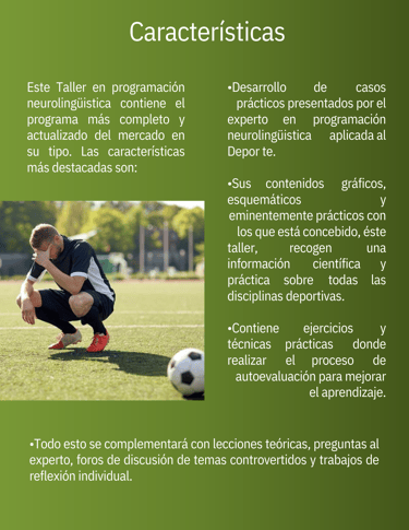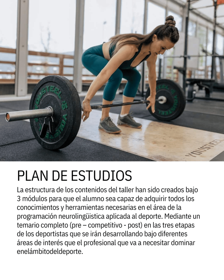 A lo largo de 3 módulos visuales y dinámicos, con imágenes y videos, descubrirás cómo aplicar la PNL al deporte de forma clara, rigurosa y transformadora.