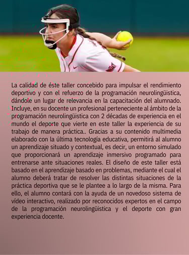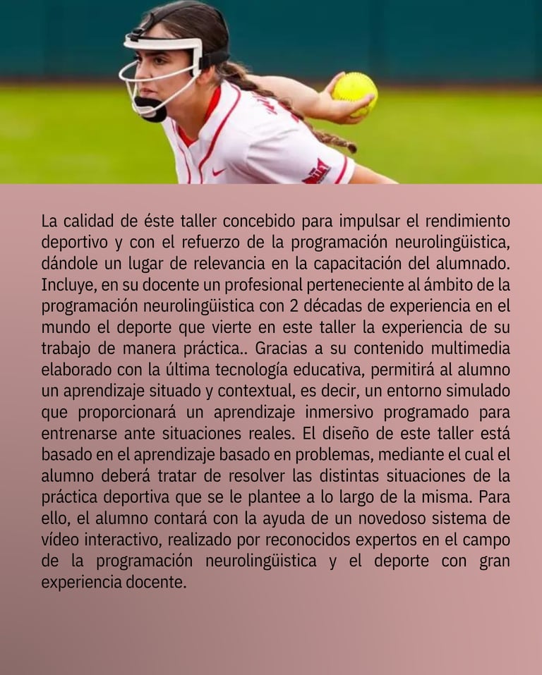 Este taller está diseñado para impulsar el rendimiento deportivo desde la mente, con herramientas de fácil aplicación para lograr resultados reales en cualquier disciplina.