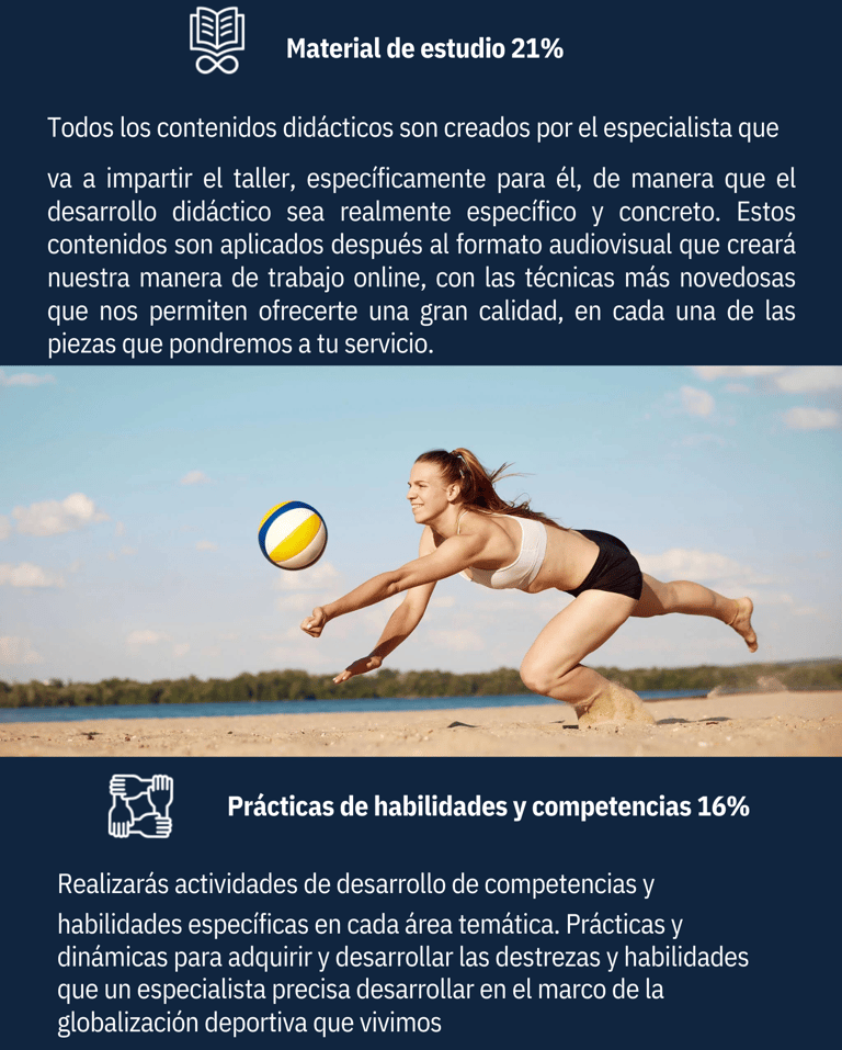 Rigor académico + enfoque práctico. Ideal para quienes quieren destacar en los puestos más competitivos del mercado deportivo.